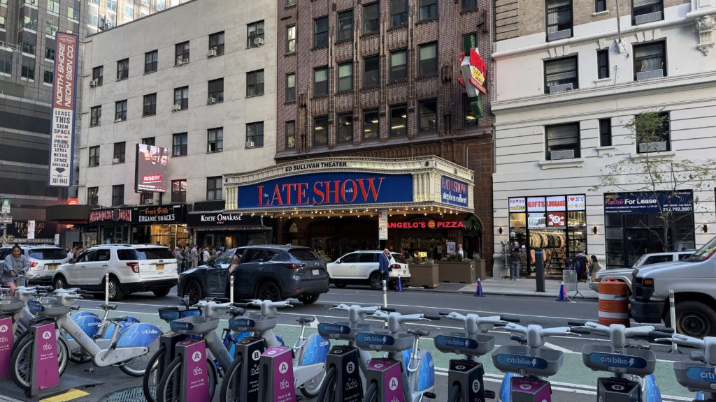 Image Description: the marquee at The Ed Sullivan Theater for The Late Show with Stephen Colbert, Broadway between 53rd and 54th Streets.