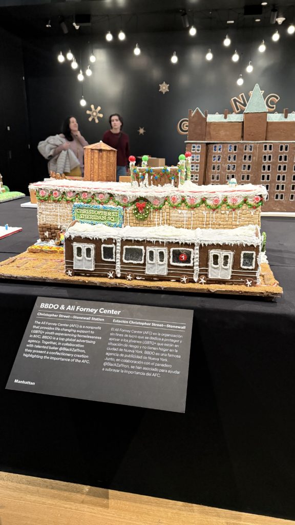 Image Description: a gingerbread rendition of the Christopher Street – Stonewall station.