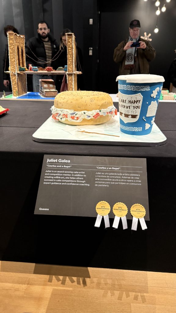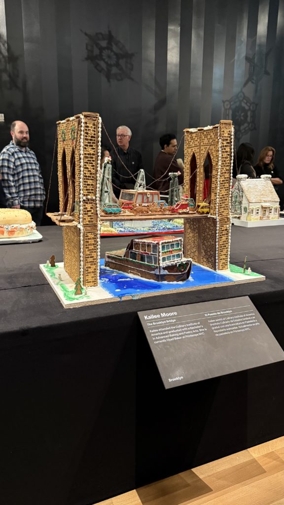 Image Description: a gingerbread rendition of the Brooklyn Bridge.