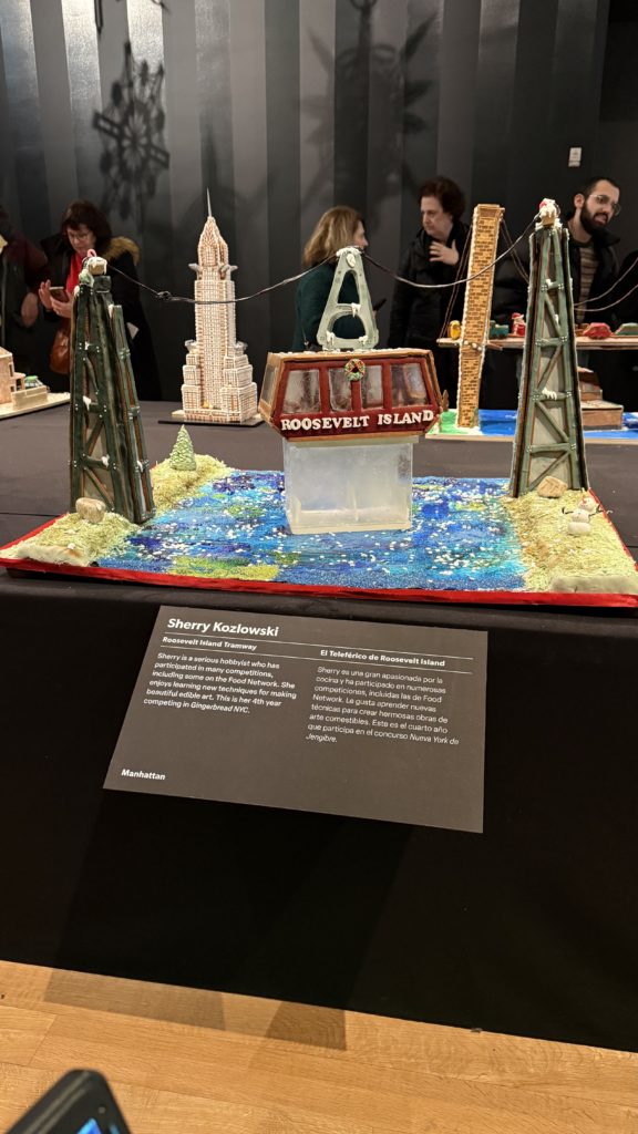 Image Description: a gingerbread rendition of the Roosevelt Island Tramway.