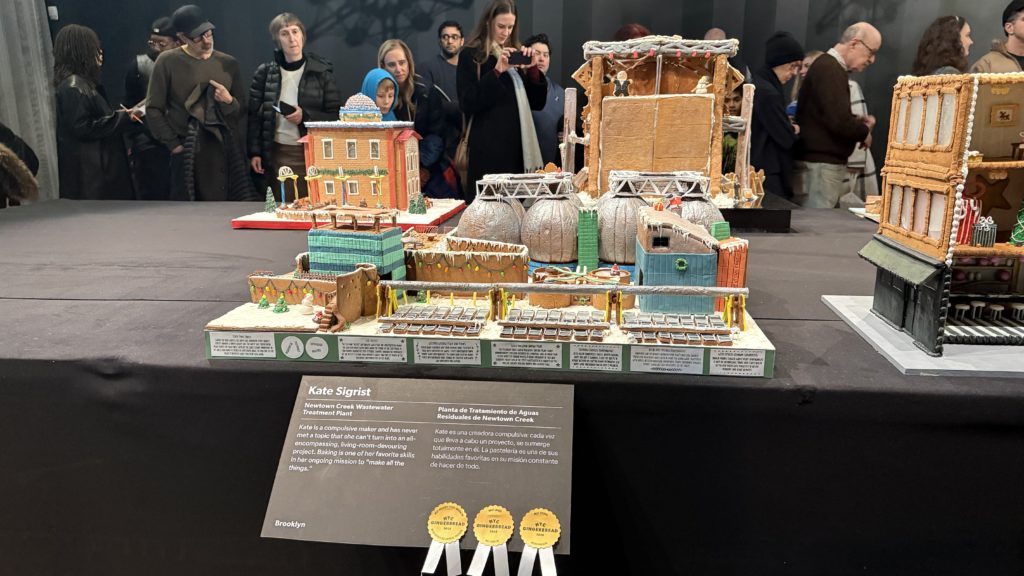 Image Description: a gingerbread rendition of the Newtown Creek Wastewater Treatment Plant.