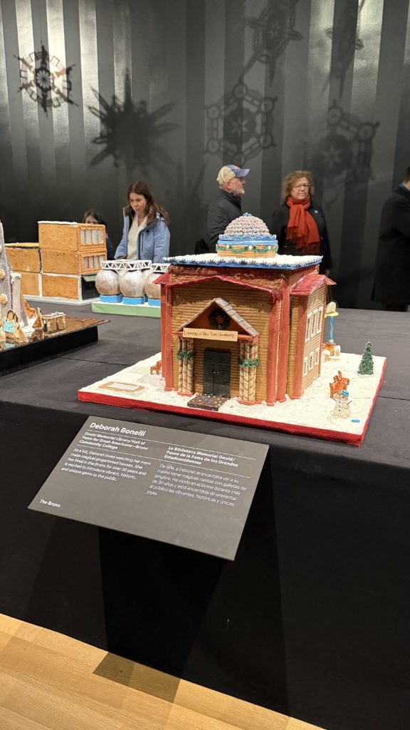 Image Description: a gingerbread rendition of the Gould Memorial LibraryHall of Fame for Great Americans at Bronx Community College.