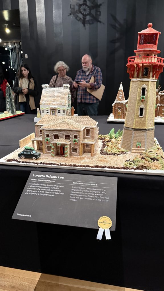 Image Description: a gingerbread rendition of the Staten Island Lighthouse.