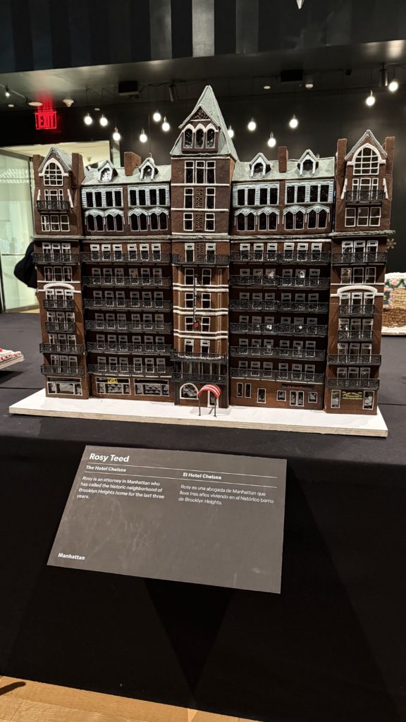 Image Description: a gingerbread rendition of the Hotel Chelsea.