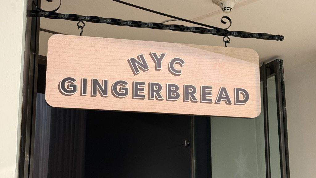 Image Description: a hanging sign that reads “NYC Gingerbread”.