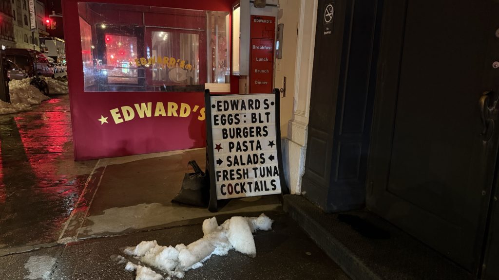 Image Description: a signboard for “Edward’s” in Tribeca, in which the last lines read “Fresh Tuna” and “Cocktail”, with no punctuation or differentiation between the lines.