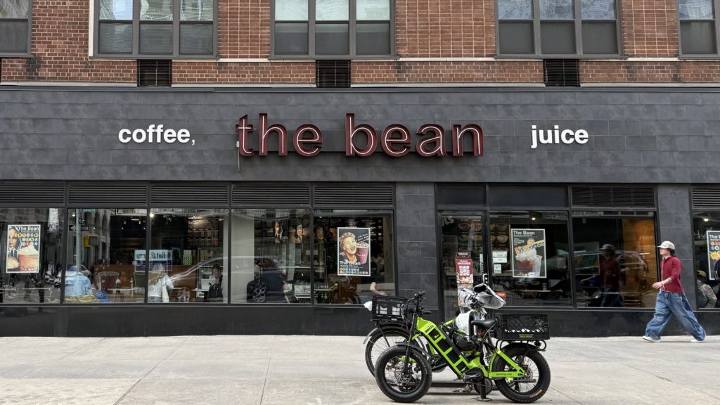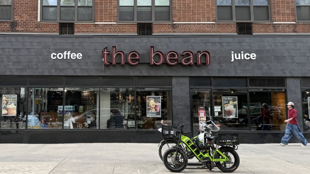 Image Description: the sign of a coffeeshop on 3rd Avenue that reads “the bean”, flacked by “coffee” on the lefthand side and “juice” on the righthand side. Read left-to-right, it reads “Coffee the bean juice”.