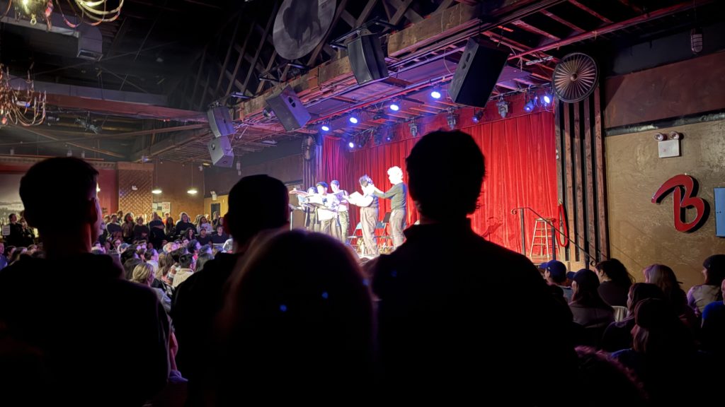 Image Description: The cast of “Heated Rivalry: The Unauthorized Musical Parody” onstage at the Bell House, Brooklyn.