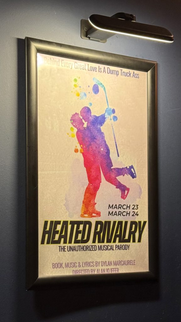 Image Description: The poster for Heated Rivalry: The Unauthorized Musical Parody, with the tag line “Behind every great live is a dump truck ass”.